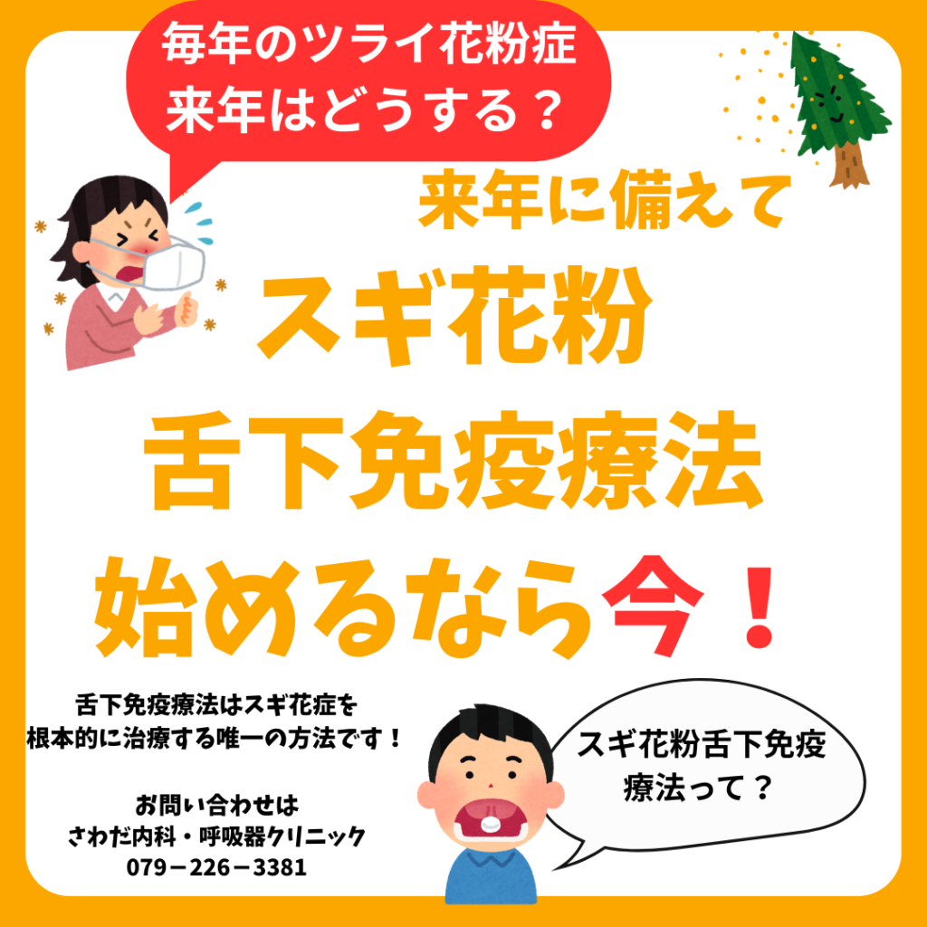 来年のスギ花粉症シーズンに向けて、舌下免疫療法を始めるなら、今の時期が最適です。