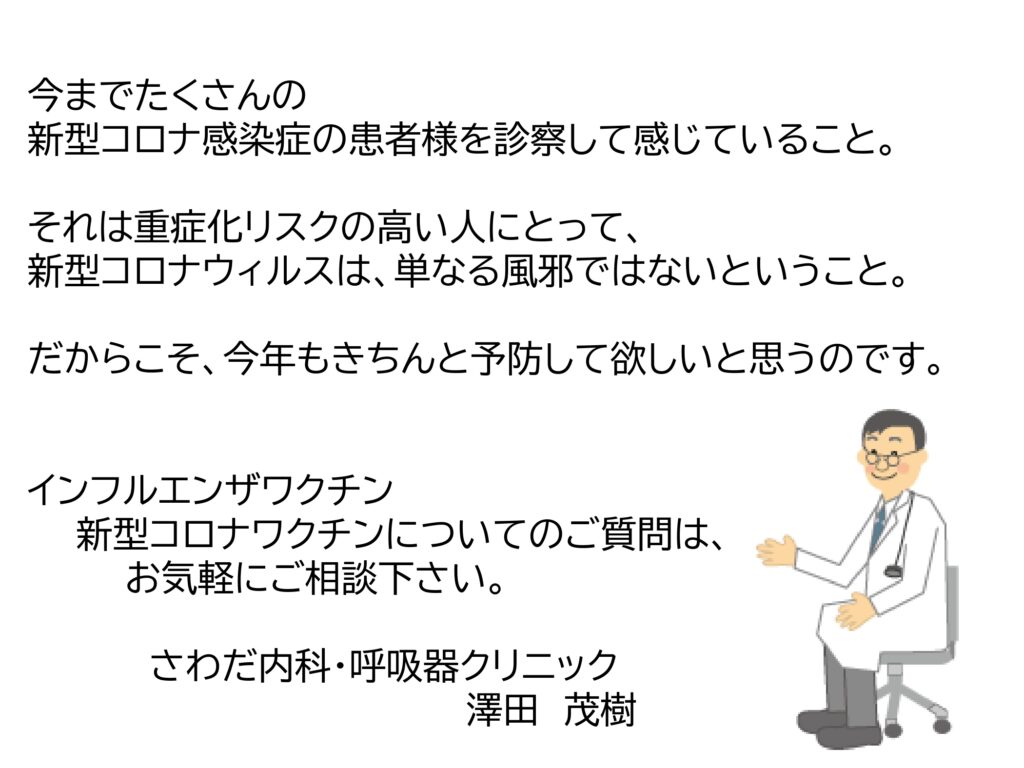 新型コロナウィルス感染症はすっかり過去の感染病と思われている方が多いように感じます。