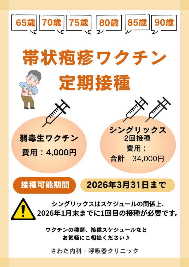 今年度より、帯状疱疹ワクチンが定期接種になりました。