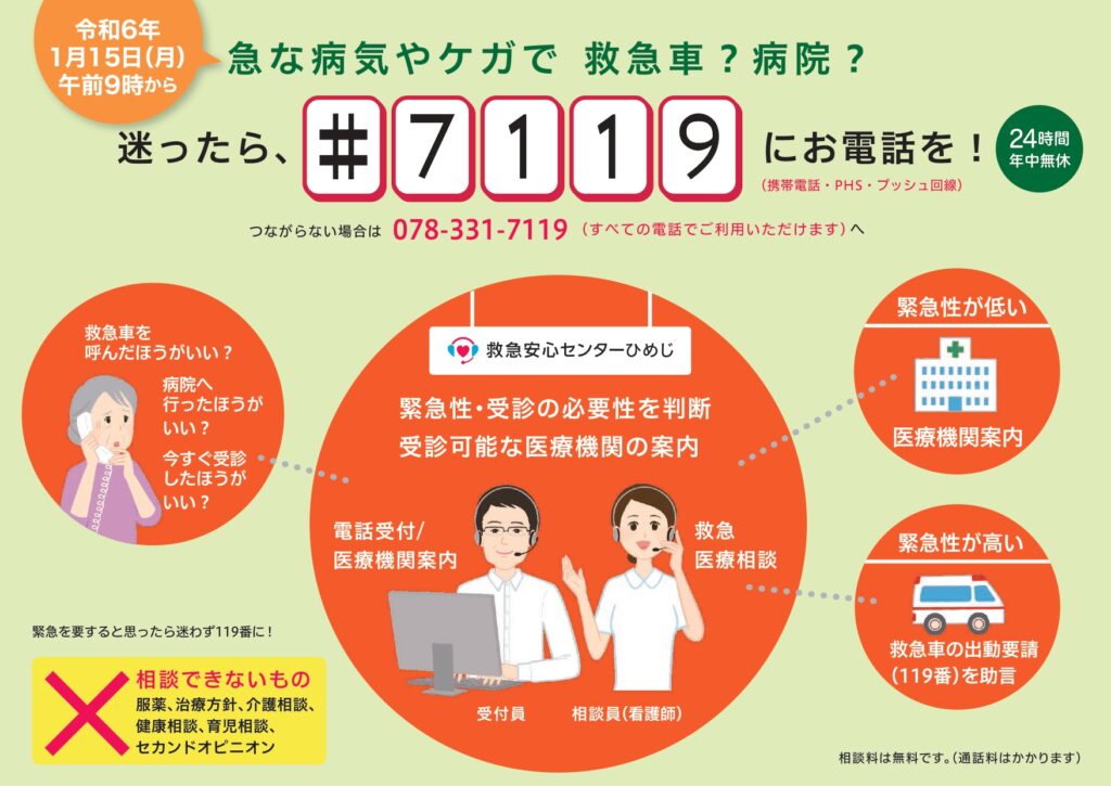 急な病気や怪我で、救急車か受診か迷ったら、まずは#7119へご相談下さい。